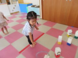 体を動かす遊びも大好きないるか組さんなので室内でも元気いっぱい!少し難しい輪投げにも挑戦しました!「難しいよ~」と苦戦しながらも何度も挑戦しどんどん上達していきました😊