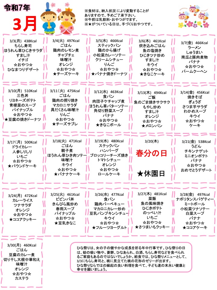 2025年3月の献立