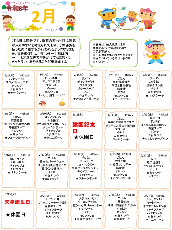 ※納入状況により献立が変更になる場合がありますので、ご了承ください。