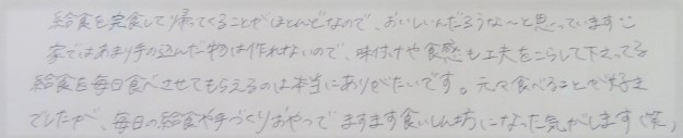 給食を完食して帰ってくることがほとんどなので、おいしいんだろうな~と思っています😊