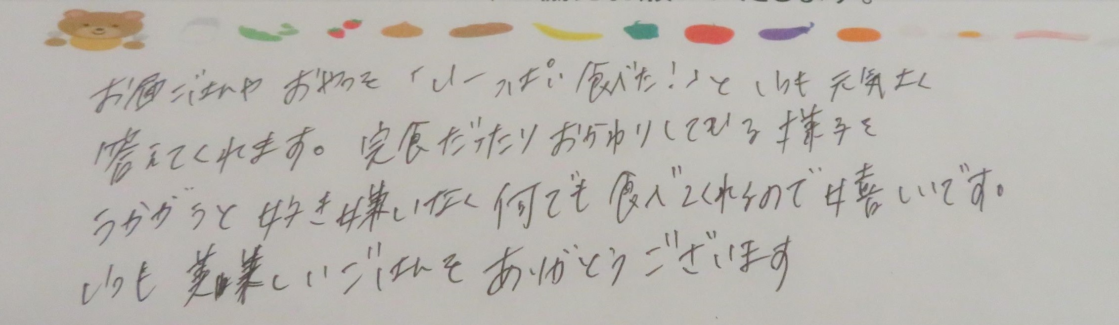 うかがうと好き嫌いなく何でも食べてくれるので嬉しいです。